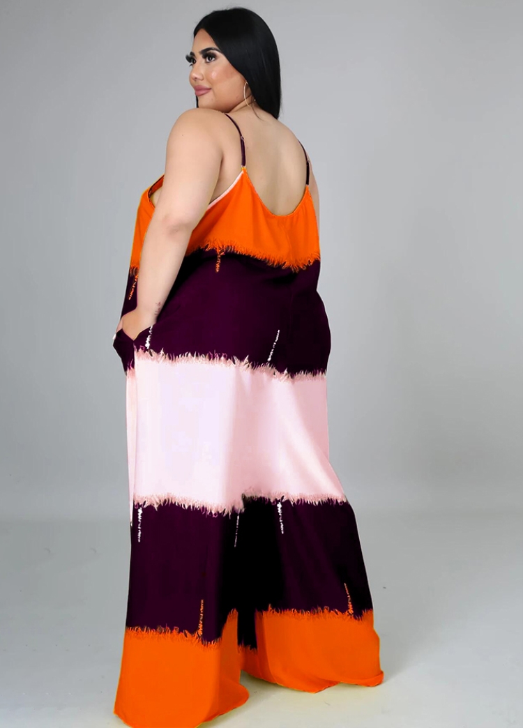 • Product Name: Plus Size Orange Color Block Strap Maxi Dress