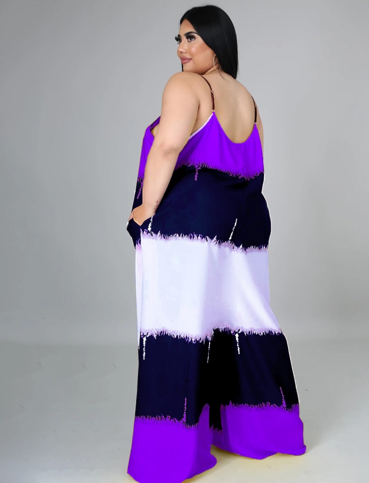 • Product Name: Plus Size Purple Color Block Strap Maxi Dress