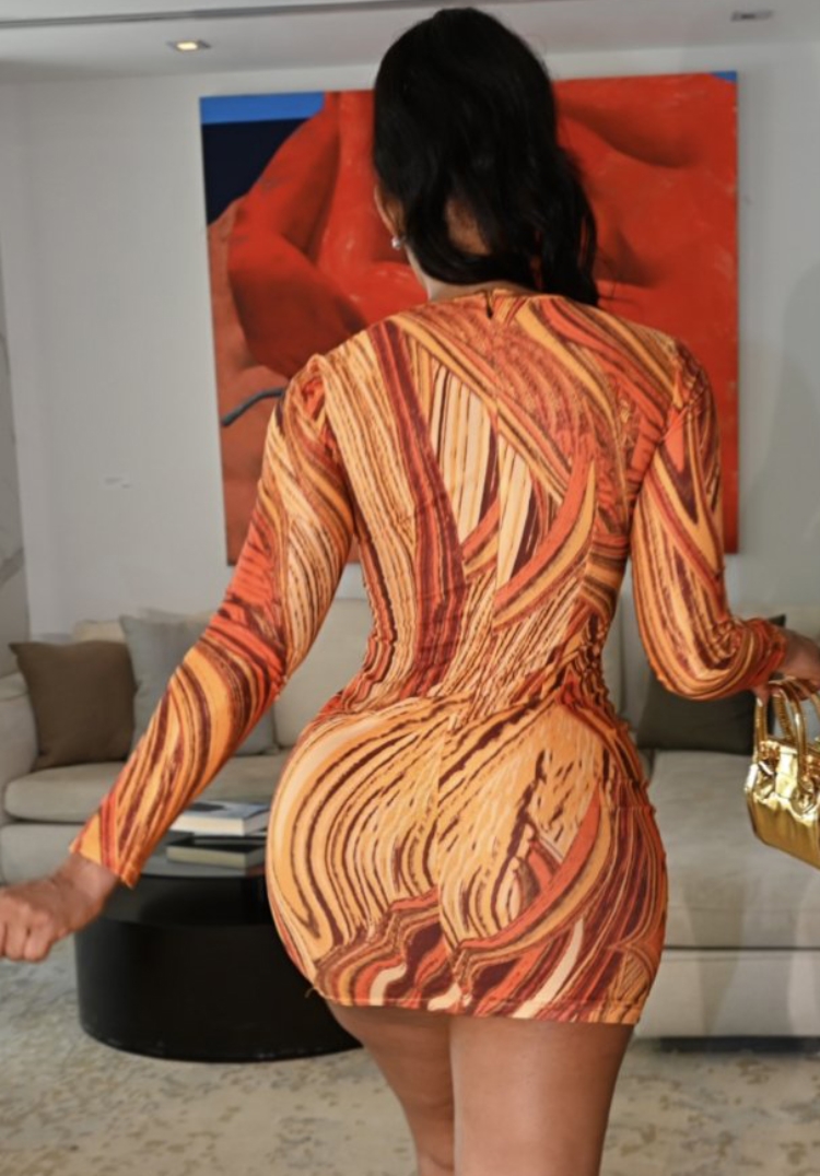 • Product Name: Sexy Print Long Sleeve Slim Fit Short Dress